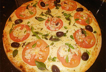 Marguerita: mussarela, tomate, parmesão, manjericão