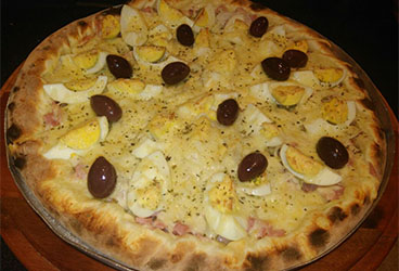 Alemã: milho, ovos, cebola, mussarela, bacon
