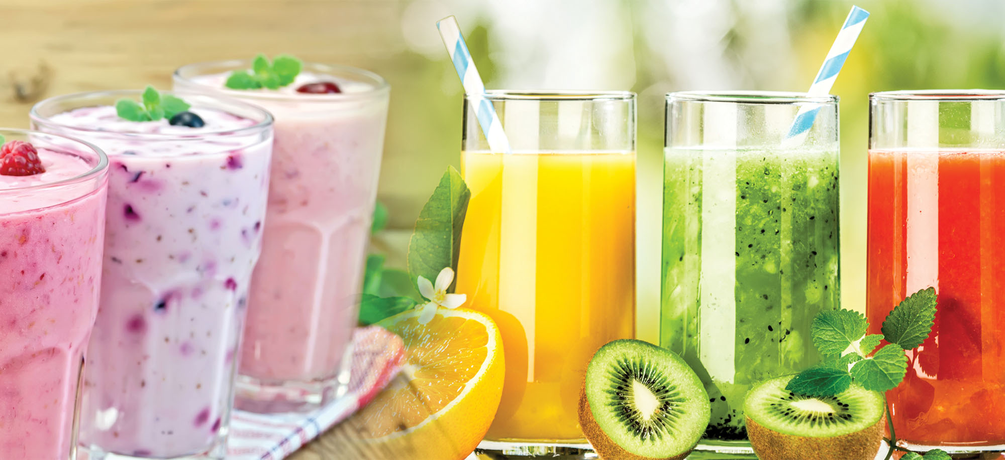 Laranja - Laranja c/ acerola - Laranja c/ morango - Laranja c/ açaí - Laranja c/ manga - Laranja c/ maracujá - Laranja c/ mamão - Manga - Limão batido c/ leite condensado - Limão - Maracujá - Melancia - Morango - Abacaxi c/ hortelã - Abacaxi - Acerola - Cajá - Caju - Goiaba - Melão